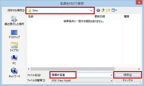 - 「名前を付けて保存」ダイアログで保存先とファイル名を設定して、「保存」をクリックします。