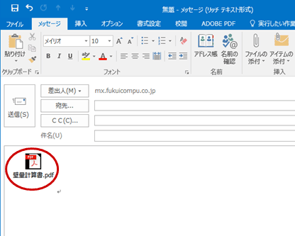 - 通常使用しているメールソフトで、保存したPDFファイルを添付して送信します。