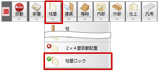 - 「柱壁」メニューから「柱壁ロック」を選びます。