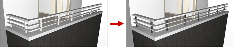 - 素材を変更する手摺をクリックします。