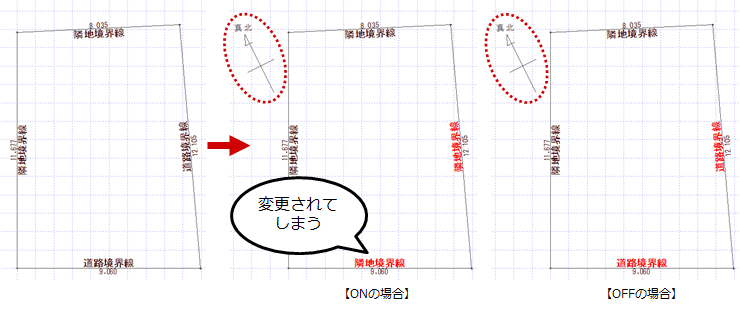 Q:方位マークを入力したときに、設定した敷地境界線が変更されないようにする方法を教えてください。