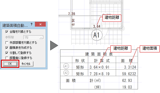 4. 「建築面積自動」ダイアログの「OK」をクリックします。