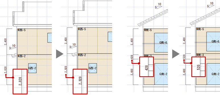 Q:外皮見付図の壁の高さを変更する方法を教えてください。