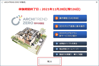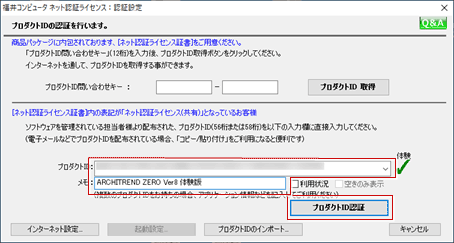 ネット認証ライセンスのプロダクトIDの認証を行って、ARCHITREND ZERO 体験版を起動します。
