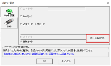 別の体験版のプロダクトIDが認証されている場合は 「プロテクト設定」が表示されます。「ネット認証設定」をクリックして「ネット認証ライセンス」を開きます。