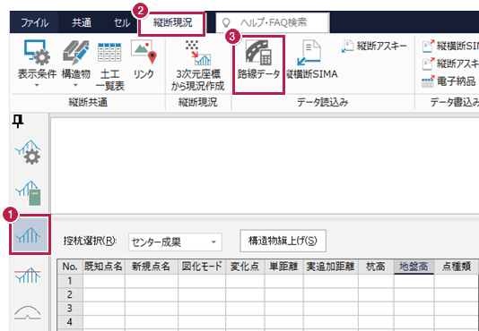 - [データ読込み]グループ-[路線データ]をクリックします。