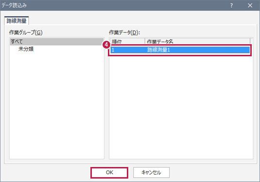 - 路線測量データ選択して[OK]をクリックします。