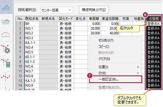 - [点種類]を「登録点B」に変更して[OK]をクリックします。