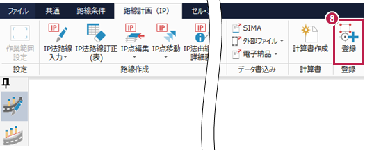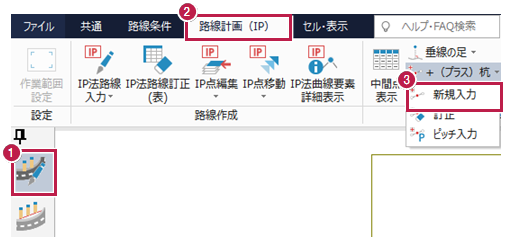 - [路線計算]グループ-[+(プラス)杭]-[新規入力]をクリックします。