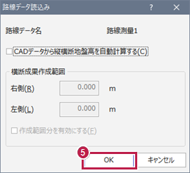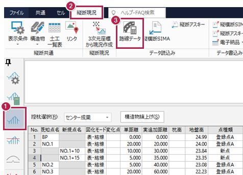 ■《縦横断測量》で[路線データ取込み]をおこない、[地盤高]を設定して座標登録する方法