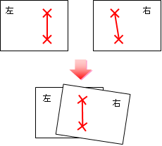 左側の写真に右側の写真を重ね合わすことで、パノラマ写真が作成されます。