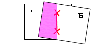 [右側の写真から重なった部分はカットする]チェックボックスをオンにすると、右側の写真から下図のピンクの部分がカットされます。