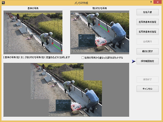 - 両側の写真の基準点の指定が終わったら、[合成実行]ボタンをクリックします。
