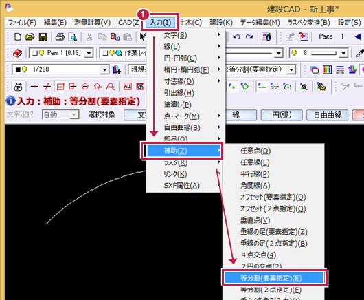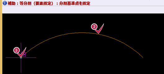 [入力]-[補助]-[等分割(要素指定)]をクリックします。