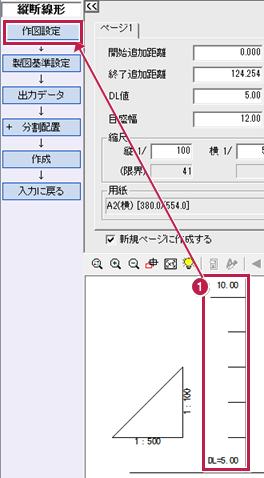 - [DL]と[目盛り]の文字サイズを変更するため、[作図設定]をクリックします。
