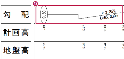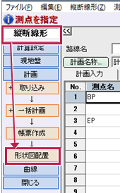 縦断表の設定は、《縦断線形》の[形状図配置]でおこないます。