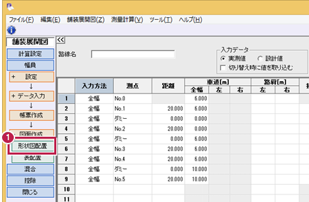 《舗装展開図》で[形状図配置]をクリックします。