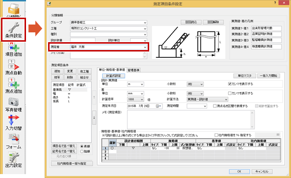 Q:出来形管理図表の[測定者]はどこの情報から連動していますか。