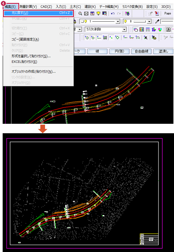 Q:《建設CAD》で、編集したラスタ(画像)を元に戻すにはどうしたらよいですか。
