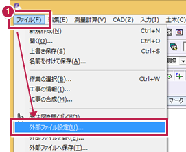 - [ファイル]-[外部ファイル設定]をクリックします。