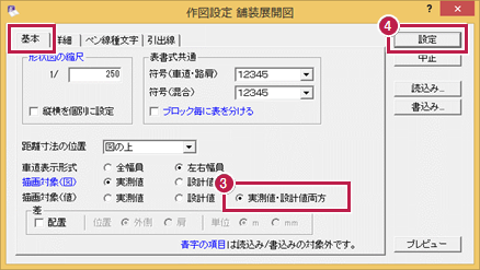 - [基本]タブの[描画対象(値)]の[実測値・設計値両方]をONにします。