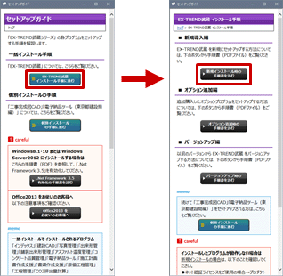インストール手順については、セットアップガイドの「EX-TREND武蔵インストール手順に進む」をクリック、「新規インストール時の手順書を読む」をクリックして開くPDFを参照してください。