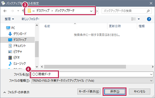 - 保存する場所を指定します。
