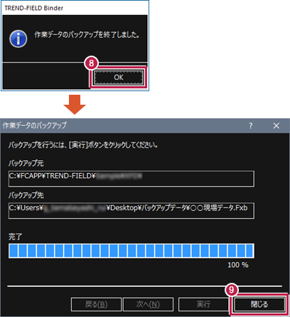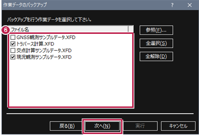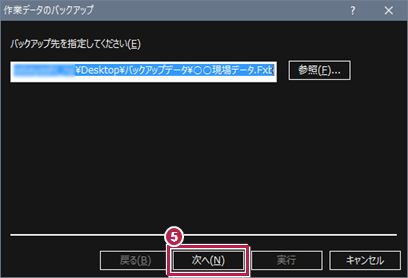 - 複数の作業データを指定した場合でも、1つのバックアップファイル(.Fxb)として保存されます。