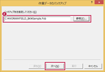 バックアップ先のフォルダーとファイル名を指定します。ここで指定したファイル名で、「.Fxb」という拡張子のバックアップファイルが作成されます。