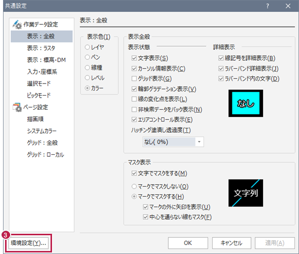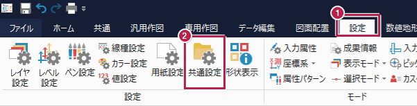 A:[設定]タブの[共通設定]で[環境設定]にある[線端]で変更してください。ただし、寸法線要素や引出線要素の場合はそれぞれのコマンドで設定します。