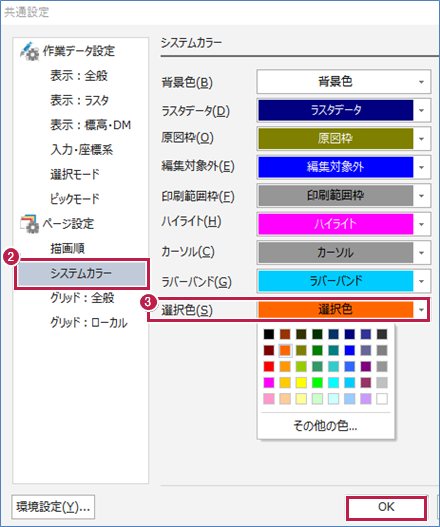 - [選択色]が選択したい要素の色と同じ場合は変更して[OK]をクリックします。