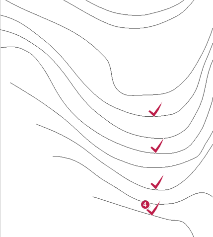 - [曲線]グループ-[コンタ]-[標高配置]をクリックします。
