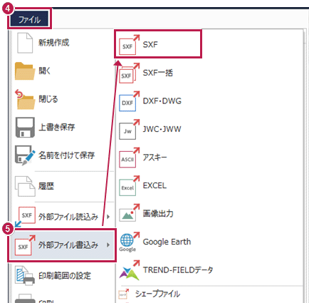 - [外部ファイル書込み]-[SXF]をクリックします。