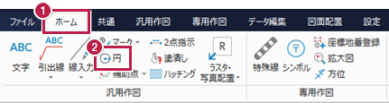[汎用作図]グループ-[円]をクリックします。