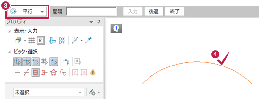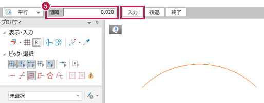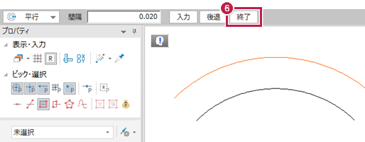 平行の円弧が入力できたことを確認して[終了]をクリックします。