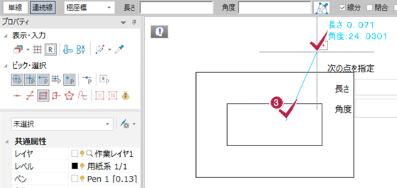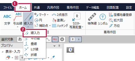- [汎用作図]グループ-[線入力]-[線入力]をクリックします。