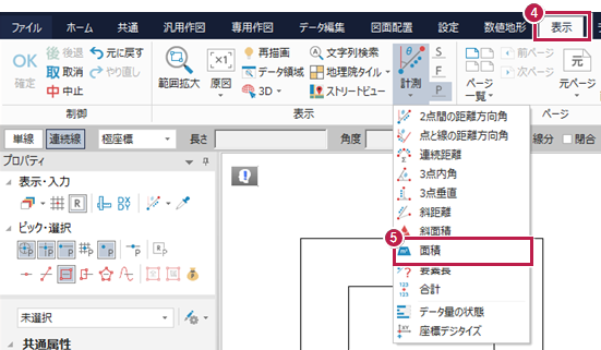- [表示]グループ-[計測]-[面積]をクリックします。
