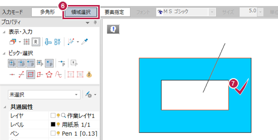 Q:《CAD》で中抜きのある形状(ドーナツ型)の面積を確認するにはどうしたらよいですか。