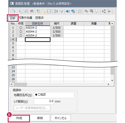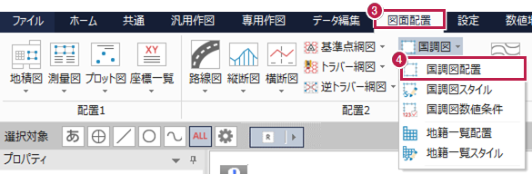 - [配置2]グループ-[国調図]-[国調図配置]をクリックします。
