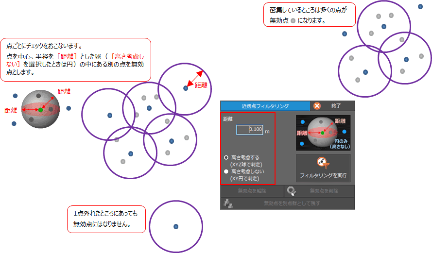 [近傍点フィルタリング]を選択します。 - 距離を設定します。