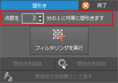 点群の点を均等に間引き、無効点とします。密度に関係なく均等に無効点にします。