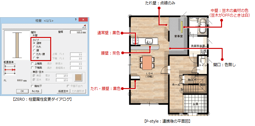 Q:P-style連携したときの平面図の壁の色について教えてください。