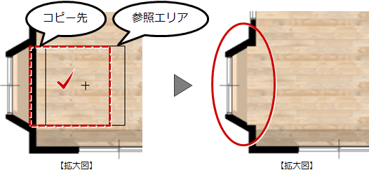 - 接する部分の壁を含めてクリックすると、参照エリアがコピーされます。