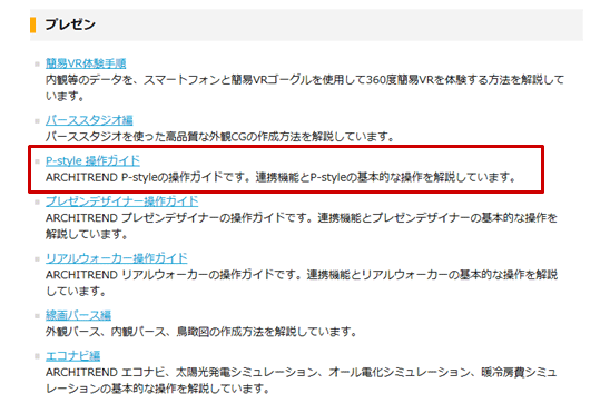 総合サポートサイト・スマートオンラインサービスの「動画・マニュアル」にある「プレゼン」の「P-style 操作ガイド」を参照してください。