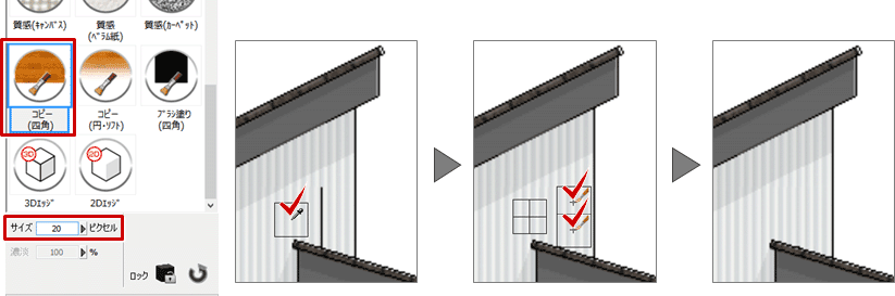 - 再度、「コピー(四角)」を選び、「サイズ」を変更して、同様に処理します。