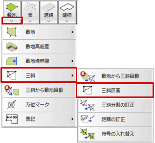 - 「敷地」メニューから「三斜」の「三斜区画」を選びます。