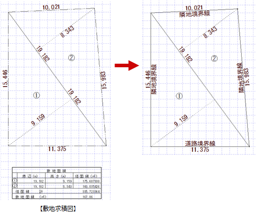 Q:敷地求積図があります。敷地の書き方を教えてください。