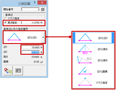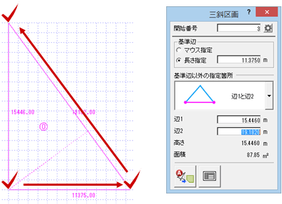 - 「基準辺以外の指定箇所」は「辺1と辺2」を選びます。