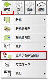 - 「敷地」メニューから「三斜から敷地自動」を選びます。