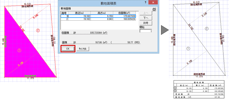 - 「敷地面積表」ダイアログの「OK」をクリックします。